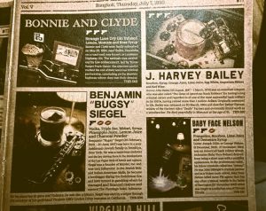 In einer noch recht neuen, außergewöhnlichen Bar der thailändischen Hauptstadt. Wer als Neuling im harten Nightlife-Wettbewerb Bangkoks überhaupt eine Chance haben will, muss sich etwas einfallen lassen. Entweder beim Design oder im Konzept. Das Abandoned Mansion in der Sukhumvit 14 setzt auf die Atmosphäre der amerikanischen Prohibitionszeit um 1930. Gangster aus dieser Epoche wie Benjamin “Bugsy” Siegel, Al Capone, Machine Gun Kelly, Bonnie und Clyde oder Baby Face Nelson sind einfach nicht totzukriegen und fühlen sich auf der Getränkekarte der Bar durchaus heimisch. Nicht anders als der damalige, aus anderen Gründen berüchtigte FBI-Chef J. Edgar Hoover. Warum sonst war seine persönliche Assistentin Helen Gandy nach Hoovers Tod 1972 damit ausgelastet, die Zerstörung aller persönlichen Unterlagen zu koordinieren?