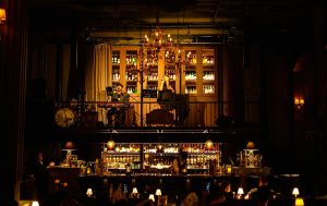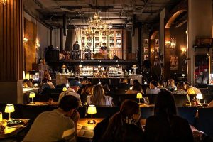Nun ist das verlassene Herrenhaus, wie man Abandoned Mansion ins Deutsche übersetzen könnte, nicht das einzige Nachtlokal mit Speakeasy-Flair. Doch die Umsetzung ist durchaus spektakulär, architektonisch und atmosphärisch stimmig. Aus ihren Sesseln schauen die BesucherInnen auf die ebenerdige breite Bar und auf die Bühne im ersten Stock, wo jazzige Musik spielt.