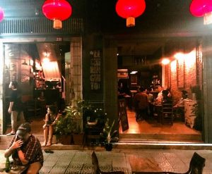 Auch in dieser Shophouse-Bar wird es nicht hell. Restaurierte Holzmöbel und alte Plakate sorgen für ein dezent beleuchtetes Retro-Ambiente. Im Menü wird es dann spanisch; der Besitzer war sechs Jahre lang in Spanien tätig. Neben Tapas gibt es zum Beispiel Tortilla de Patatas (Omelette), Albondigas (Fleischbällchen) oder Empanadas (Teigtaschen) oder Bocadillos (Sandwiches), die man alle mit einem Xoriguer-Gin herunterspülen kann.