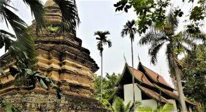 Von der Straße aus sind die schönen Seiten der Tempelanlage nicht einsehbar. Wie viele andere Tempel in Chiang Mais Altstadt, so wurde auch der Wat Umong Mahathera Chan in der jüngeren Vergangenheit renoviert, was dem fordernden Klima des thailändischen Nordens geschuldet war. Zugleich entstand mit neu hinzugefügten Gebäuden ein Mix aus Alt und Neu, der auf den Besucher durchaus stimmig wirkt.