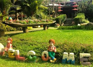 Das Sala Café ist ein typisches Ausflugsrestaurant. Etwa 40 Autominuten entfernt von der City im Vorort Mae Rim, wo wir gerne mit unserem Scooter herumcruisen und im Sala eine Pause einlegen, in der meine Frau Toey ihre geliebten Spaghetti mit Meeresfrüchten bestellt. Neben Kaffee und Kuchen (für mich) gibt es im Sala Café nämlich morgens, mittags und abends auch asiatische und internationale Küche (auch für Vegetarier und Veganer). Man kann auch, je nach Wetter, in einem verspielt dekorierten Garten draußen sitzen.