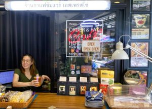Erst bei der genaueren Recherche fiel mir auf, dass das Angebot größer ist der Raum und auch Essen umfasst: Frühstück, Fast Food, Asian, Thai, Australian. Viele kommen inzwischen, um ihre Speisen und/oder Getränke mitzunehmen.