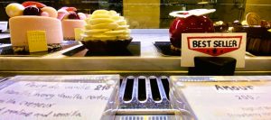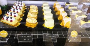 Die Stücke in der Auslage sind nicht so süß wie sie aussehen, aber so lecker. Sage ich. Ein Gast hingegen monierte die „völlig überteuerten Instagram-Desserts. Hier wird mehr Wert gelegt auf Chi Chi und Bling Bling, aber jedem das Seine.” Eine andere Besucherin wiederum lobte „alle guten Zutaten, Geschick und Akribie beim Backen”.