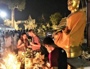 In der magischen Atmosphäre von Chiang Mais Tempeln bei Nacht wird einer der höchsten Feiertage des buddhistischen Kalenders begangen. 2025 fällt der Makha Bucha Day (Ehrung des dritten Mondmonats) auf den 12. Februar. Konkret bezieht er sich auf Buddha und die Lehren, die er am Vollmondtag des vierten Mondmonats verkündete.