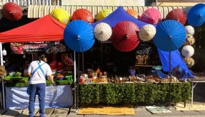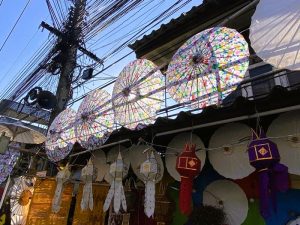Denn eigentlich galt mein Interesse dem „Bo Sang Umbrella & Handicraft Festival“; im Norden Thailands ist es alljährlich eines der farbenfrohesten Feste. Aus China einst herübergeweht oder aus Myanmar, die Quellen sind wie so oft uneins. Wie auch immer: Die Schirmherrschaft im Land des Lächelns gehört eben Borsang oder auch Bo Sang, einem kleinen Ort im Osten Chiang Mais, ziemlich genau 10 km vom Zentrum entfernt.