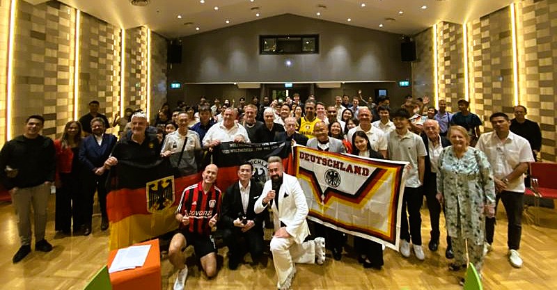 Auch wenn Reiner Calmund die thailändische Dolmetscherin hin und wieder an ihre Grenzen trieb, war es für alle ein unterhaltsamer Abend. Mit einem riesigen Mannschaftsfoto zum Abschluss.