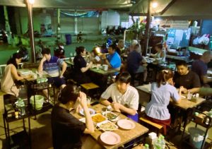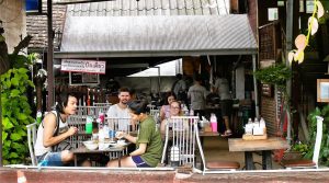 Lampangs Riverside Guesthouse ist in jeder Hinsicht gut gelegen. Denn bis zum stets gut gefüllten Restaurant “Aroy One Baht” sind es nur 200 Meter und zum Wochenend-Markt Kad Kong Ta mit Garküchen und Musik in der Walking Street auch. “Aroy One Baht” bedeutet “Lecker für einen Baht”, was manche Gäste wohl in der Hoffnung auf ein gastronomisches Schnäppchen einkehren lässt. Dann stellen sie fest, dass die Preise doch eher dem normalen Niveau entsprechen, aber Qualität und Quantität versöhnen.