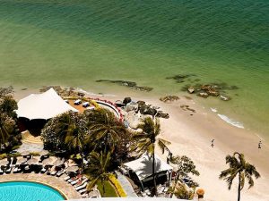 Wir waren 2020, zu Pandemie-Zeiten, im Hilton Hua Hin Resort & Spa, Baujahr 1991, dessen Lobby und untere Stockwerke renoviert wurden, um mit der Moderne Schritt zu halten. Operation gelungen, wie die Bilder von heute zeigen. Die Übernachtung auf Fünf-Sterne-Niveau kostet auf den gängigen Buchungsplattformen je nach Saison und Zimmerkategorie ab etwa 3500 Baht (im Mai 2025 ca. 95 Euro).
