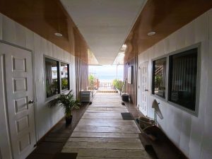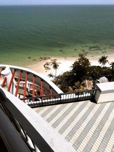 Im Gang habe ich es mir neben unserem Zimmer mit Blick aufs Meer bequemgemacht und das wunderbare Buch “Zuhause” von Daniel Schreiber gelesen (Foto: Kesorn Chaisan).
