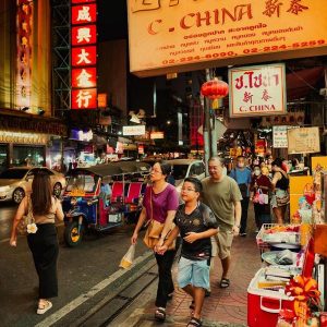 Seit 200 Jahren beleben Thai-Chinesen, die Abkömmlinge chinesischer Einwanderer, den Alltag im Königreich. Mit Ehrgeiz und Durchhaltevermögen überwanden sie im alten Siam eine allmächtige Bürokratie und engstirnigen Nationalismus. Europäer arbeiten in Richtung Ruhestand, Chinesen in Richtung Wohlstand: Der Fleiß der Chinesen ist legendär, Chinatown im Samphanthawong Distrikt eines der umtriebigsten Viertel Bangkoks. Ich wusste nicht einmal, dass es coole Straßen gibt, bis ich las, dass Chinatowns Yaowarat Road zur achtcoolsten Straße der Welt gewählt wurde. Im nächtlichen Duftmeer marinierten oder rohen Fleisches, umgeben von der strengen Würze fangfrischen Meeresgetiers stehen alle Sinne stramm und einer vor allem: der olfaktorische. Mancher möchte hier tausend Nasen haben, der nächste nicht mal die eine, die er im Gesicht trägt. (Ausschnitt aus meinem Buch “Thailand unter der Haut” – Kapitel: Die Ess-Klasse).