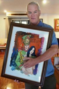 Chris Coles, der Künstler, der Klashorsts Mittelfinger porträtierte, sagte eines Tages zu John Fengler: “Wenn du in Phnom Penh bist, solltest du Peter Klashorst aufspüren. In irgendeiner Bar mit Frauen.” John tat wie geheißen, stieg nach langer Recherche schließlich eine wackelige Treppe hoch und landete vor einem unbeschilderten Dachgeschoss: