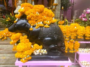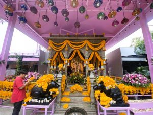 Ein Restaurant, ein kleiner Markt, ein blumenübersäter Schrein mit Elefantengott Ganesha im Zentrum – der Platz zwischen Nimmanhaemin Road Soi 1 und Soi 3, in direkter Nachbarschaft zur großen Shopping Mall One Nimman, wird von den Flaneuren im Stadtteil Nimman noch oft übesehen, ist aber einen Besuch wert.
