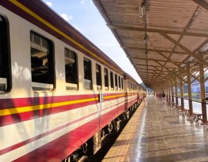Zum Abschluss unserer gemeinsamen Tage fuhren wir gut 100 Kilometer südlich nach Lampang. Eine Zugfahrt in Thailand ist selten zügig, doch selbst in der 3. Klasse bei offenen Fenstern und der vorbei huschenden Landschaft des grünen Nordens immer eine Freude. Nebenbei registrierten wir, dass der hiesige Zugverkehr meist ohne größere Verspätungen auskommt und die Internetverbindung in den Waggons meist sehr gut ist. Warum erwähne ich das eigentlich?