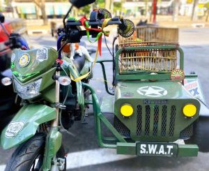 Ich saß in einem meiner Lieblingscafés, da rauschte ein Motorrad mit Seitenwagen heran. Aufgebrezelt im Stil des US-Militärs, wenn meine Wahrnehmung stimmt. Irgendwo im Seitenwagen war ein Radio versteckt, das amerikanische Schlager aus den 1950er Jahren in die nur leicht versmogte Luft dröhnte. Der Mann am Lenker trug die Uniform eines Lieferfahrers für Grab, auf dem Rücksitz saß ein kleiner Hund, im Seitenwagen ruhte eine Kiste mit weiteren vier bis sechs kleinen Hunden, deren Rasse ich nicht bestimmen konnte. Alle waren wohlerzogen, behielten ihre Plätze auch, als der Mann ausstieg, sich an den Nebentisch setzte und eine Geige aus einer Schatulle holte. Es war ein ganz normaler Nachmittag in Chiang Mai.