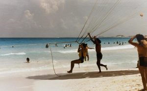 Throw back Thursday: Nach dem Endspiel der Fußball-WM 1986, die ich sechs Wochen als dpa-Reporter begleitete, nutzte ich die Gelegenheit, mit meiner damaligen Partnerin noch fünf Wochen durch dieses großartige Land Mexiko zu fahren. Zum Schluss machten wir Station in Cancún am Golf von Mexiko, der schon damals so hieß wie heute. Parasailing/Fallschirmsegeln war eines meiner Vergnügen. Ein Jahr später riss Hurrican Hugo den halben Strand weg in Cancún; bei meinem letzten Besuch 2005 war die Stadt endgültig zum Ballermann für US-Touristen geworden.