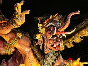 Zu den schönsten seiner vielen Erinnerungen gehört Nyepi, der Tag der Stille, der Meditation und des Fastens auf Bali, das höchste hinduistische Fest der Insel, das balinesische Neujahr. Am Tag vor Nyepi erlebte Klaus eine Exorzismus- Zeremonie, bei der in einem karnevalsähnlichen Umzug unter großem Lärm Ogoh-Ogoh genannte Puppen verbrannt wurden. Sinn der Zeremonie: Verbannung der bösen Geister aus den Dörfern und aus dem Leben der gläubigen Balinesen.