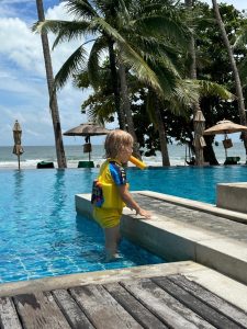 Wir trafen uns Mitte Juni mit unseren Freunden Markus und Laura auf Thailands zweitgrößter Insel, sie waren mit ihrem Sohn für eine Woche aus Deutschland angereist. Zum Start regnete es zweieinhalb Tage lang. Am ersten Abend nahm der Dreijährige senen Vater beiseite: “Du, Papa, das war ein super Tag heute!” Er hatte sich mit Schwimmflügeln in den Hotelpool gestürzt und im nassen Sand des White Sand Beach nach Muscheln und Krabben gestöbert.