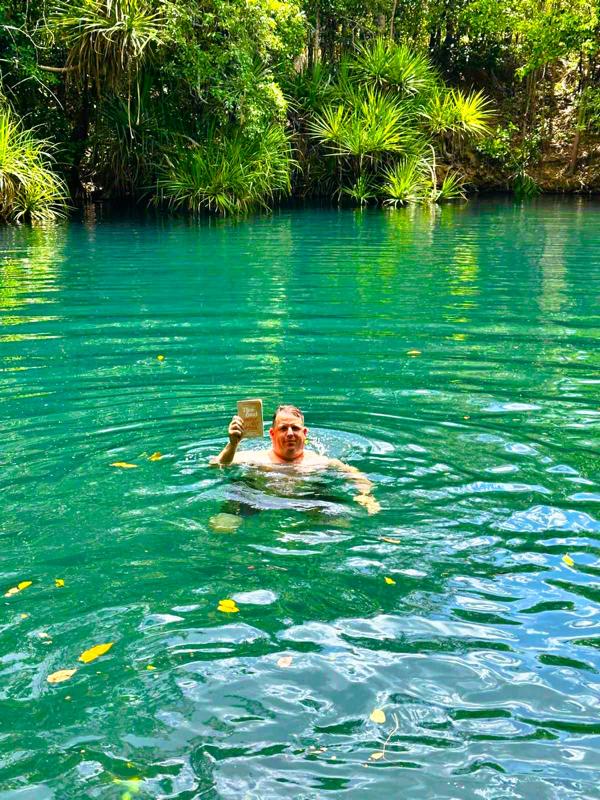 Mein Freund Philipp Görgen arbeitet weiterhin und unermüdlich an seinem Projekt “Die Vermessung der Welt”. Mein Buch “Thailand unter der Haut” hat er immer dabei. Das Bild schickte er mir aus Darwin/Australien.
