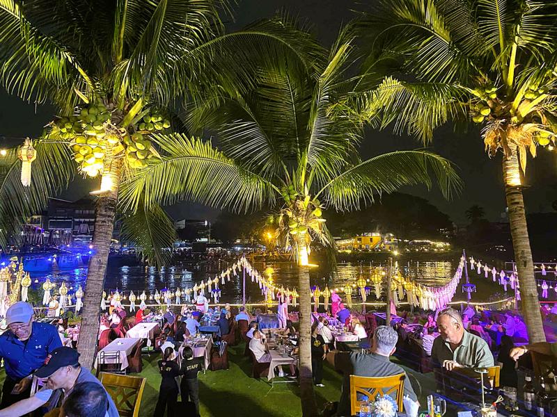 Klaus und Khun Disco luden ein, so feierten meine Frau Toey und ich mit beiden den ersten Loi-Krathong-Tag traditionell im Restaurant Chef`s Together am Ping River. Am Ufer genossen wir, unsere Freundin Opal stieß später dazu, einen außergewöhnlich schönen Abend in außergewöhnlicher Atmosphäre.