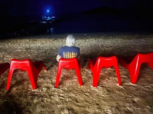 meine Freunde Klaus und Khun Disco freuten sich auf eine sonnige, ruhige Woche im Palm Beach Resort auf Koh Mak. Sie freuten sich zu früh. Wo wir vor zwei Jahren zur selben Jahreszeit zusammen strahlenden Sonnenschein und ein friedliches Meer genossen, mussten sie sich diesmal warm anziehen. Oft regnete es, ein heftiger Wind blies und die See schien zornig zu sein.