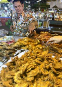 Wir wohnen in einem echten Thai-Viertel südlich der Altstadt. Vieles erinnert mich an meine Kindheit, viele Kreise haben sich für mich in Thailand geschlossen. Meine Frau, die gerne und gut kocht, geht fast täglich zum Frischmarkt namens Kadkom. Auch der ist nicht von steigenden Kosten und Preisen verschont geblieben, aber immer noch eine preiswerte Quelle für Obst, Gemüse, tropische Früchte und Fische. Selbst einzelne Karotten oder Bananen werden in Plastik gepackt. Das stört mich, die Einheimischen stört es nicht. Sie haben andere Sorgen.
