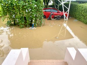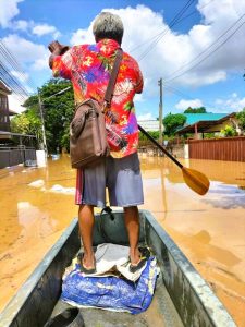 obwohl unser Häuschen auf Stelzen steht, kam uns das Wasser zu nahe. Damit hatten wir nicht gerechnet. So mussten wir am Samstag einzeln und mit einem Kanu evakuiert werden, das war mal wieder eine ganz neue Erfahrung. Wir zogen ins Hotel im trockenen Zentrum Chiang Mais. Auch Chiang Rai und Mae Sai sind zum zweiten Mal in wenigen Tagen nach Starkregen von heftigen Überschwemmungen betroffen.