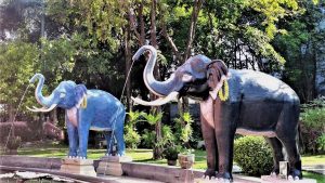 Das Innenleben des Museums gestaltete der deutsche Künstler Jacob Schwarzkopf; ich hoffe, ich kann zu einem anderen Zeitpunkt näher auf seine spektakuläre Arbeit eingehen, auf die fantastische Kuppel aus Buntglas zum Beispiel. Im Museumsgarten trafen wir mythische Fabelwesen, weitere Elefanten und eine generationsübergreifende, familiäre Tanzgruppe, die gerade von einer Vorführung kam.