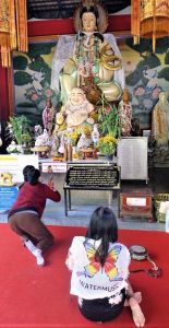 Bleibt die Frage: Wer ist eigentlich der gut gelaunte Dicke, der in fast allen Tempeln sitzt, auch im Wat Chaimongkol?