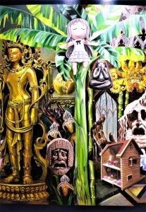 In den Exponaten der aktuellen Bangkok Art Biennale und den Galerien der Hauptstadt dominieren die Themen, die den meisten Menschen 2022 und in der Vorausschau auf 2023 zu schaffen gemacht haben: persönliche Verunsicherung, Zukunftsangst, Migration, Krieg, Einsamkeit. In Thailand ist die Angst vor dem Covid-Virus noch nicht verflogen, die Menschen tragen weiterhin die Maske.