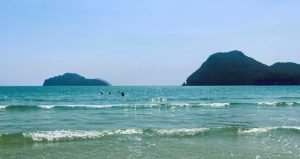 “Eine der schönsten Buchten in ganz Thailand” las ich und dachte: Werbesprech. Aber dann: Bewaldete Hügel am rechten Rand, links als Grenze ein Hügel wie der Zuckerhut in Rio, feiner Sand, strahlender Sonnenschein – es war das reine Glück, im seichten Wasser der Manao-Bucht zu waten, an einem der schönsten Strände, die ich je gesehen habe. Er liegt in einer der drei attraktiven Buchten – Noi, Pachuca und Ao Manoa -, deretwegen Prachuap Khiri Khan schon während der Herrschaft von König Rama V. zum Badeort wurde.