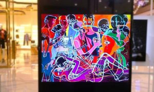 Das Einkaufszentrum ist groß genug, um mit großzügig dimensionierten und ständig wechselnden Ausstellungen immer wieder Medien und Interessenten anzulocken. Mich interessierte das Digital Art Festival. Digitale Kunst, käuflich zu erwerben mit NFTs, Non Fungible Tokens. In der Kunstszene sind NFTs der letzte heiße Scheiß.