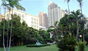 Und mittendrin, mitten im hektischen Bangkoker Großstadt-Alltag und von Hochhäusern umzingelt, liegt eine Oase der Ruhe und der gehobenen Küche in diversen Restaurants.