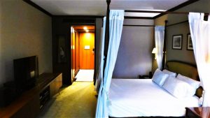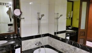 Da es im Seitenflügel kein Nichtraucherzimmer mehr gab, erhielt ich ein Upgrade ins Hauptgebäude. Die Größe meines Zimmers hätte für drei Personen gereicht, die sich im schummrigen Licht allerdings selten gesehen hätten. Auf den großen Buchungsplattformen legen die jüngsten Bewertungen nahe, dass bestimmte Angebote des Hotels (Frühstück zum Beispiel) an Qualität deutlich eingebüßt haben. Mich beeindruckten die umwerfende Hilfsbereitschaft und Freundlichkeit des Personals, vor allem an der Rezeption.