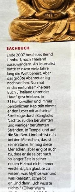 Zur Abrundung einer erfreulichen Woche widmete das in Thailand erscheinende Magazin Der Farang meinem Buch eine ganze Seite. Das etwas gekürzte Kapitel Katai im Erotischen Garten schildert, wie stark Katai Kamingas Erotischer Garten nahe Chiang Mai die Gemüter erregte. Und im Interview erzähle ich ein wenig über das Buch und warum ich für die Neugierigen schreibe und nicht für die, die schon alles wissen.