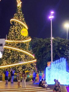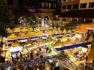Die Thais feiern bekanntlich jeden Anlass, der sanuk verspricht, Spaß. Dennoch überrascht es mich, dass es in Chiang Mai sogar einen Weihnachtsmarkt gibt. Allerdings forschte ich im Gedränge zwischen den vielen Büdchen vergebens nach Dominosteinen, Lebkuchen und Marzipankartoffeln. Stattdessen traf ich einen aufblasbaren Weihnachtsmann hinter Gittern.