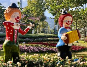 Chiang Mais farbenprächtige Festivalsaison hält an. Noch bis zum 1. Januar läuft das “Charming Flower Festival” im Chaloem Phrakiat King’s 82nd Anniversary Park (nahe dem 700-Jahr-Stadion), wo wir einige Stunden durchs weitläufige Gelände streiften. Die Stadt hat an nichts gespart – das Ergebnis kann sich sehen lassen. Nur der gekreuzigte Osterhase verwirrte mich. Vielleicht fällt für die Thais Weihnachten und Ostern auf einen Tag.