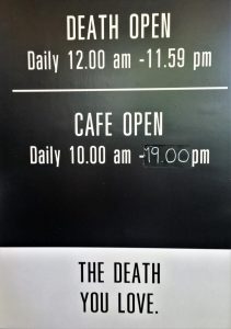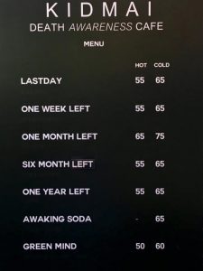 Kapitel 15: “Probeliegen im Café des Todes”. Das Kid Mai Death Awareness Café in Bangkoks Ari-Viertel will das Bewusstsein der Besucher für den Tod und damit für das Leben schärfen. Jeder Gast kann sich für drei bis fünf Minuten in einen original thailändischen Sarg legen. Was ich trotz Platzangst auch gemacht habe. Nach dem Foto wurde der Sarg geschlossen.