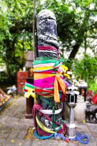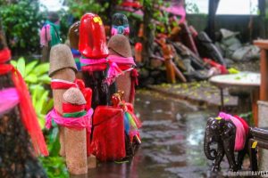 Chao Mae Tuptim, Namensgeberin des Schreins, war eine präbuddhistische Baumgöttin, die ihren Verehren Segen spendete und den Glauben an eine bessere Zukunft. Als sich herumsprach, dass eine Frau vor dem Schrein (oder dem Baum daneben?) gebetet hatte und kurz darauf schwanger wurde, eilten Frauen mit Kinderwunsch aus ganz Thailand an diesen Ort. Und die Zahl der Phalli wuchs auf über 100.
