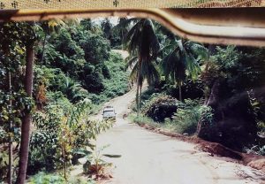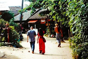 Eines Tages fuhren wir auf einen Kaffee die kurze Strecke nach Thongsala. Erst zurück und bergauf war unsere 125ccm-Honda zu schwach auf der motorisierten Brust, genau dort, wo der Ausflug in den ausgewaschenen Spurrillen der Insel zur Camel Trophy ausartete. Doch erst als sich das Vorderteil des Bikes aufbäumte und ich vom Rücksitz einen unfreiwilligen Salto rückwärts hinlegte, fanden wir zur Arbeitsteilung. Angelo fuhr ohne Passagier den Hügel hoch und ich ging zu Fuß. Wieder einmal fasste ich den Entschluss, den Motorradführerschein zu machen. Gesagt, getan – 19 Jahre später, in Chiang Mai.