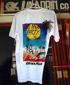 Wir fuhren mit dem Songthaeo, einem zweireihigen Sammeltaxi, zum Strand Haad Rin West. 1,2 Kilometer lang und bereits bekannt für seine Vollmond-Parties.