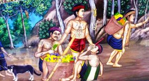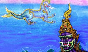 Historische Wandgemälde mit Szenen aus dem Ramakien