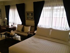Eine Rezension in der Bangkok Post unter dem Titel „Leben wie im Museum“ führte mich ins Hotel „Vimala Residence“. Es ist erst seit ein paar Tagen öffentlich zugängig und eigentlich eine Privatresidenz. Darinnen hatte ich ein Zimmer für mich, und ich aß und schlief tatsächlich in der Geschichte Thailands. Alle Räume sind gefüllt mit Erinnerungsstücken und Reminiszenen an die Geschichte einer Familie, die auch dank ihrer Verbindung zum Königshaus zur höheren Gesellschaft zählt.