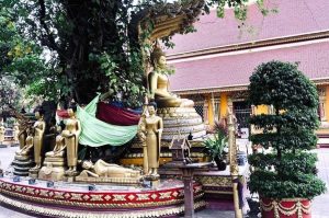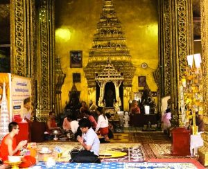 Liegt es an einer Legende. die in etlichen Variationen erzählt wird, dass der Wat Si Muang der beliebteste Tempel in Vientiane ist? Der Sage zufolge opferte sich eine junge, schwangere Frau namens Si Muang, um die Geister zu befrieden, auf deren Land der Tempel 1563 erbaut wurde, zur Zeit des Königreichs Lan Xang. Si Muang stürzte sich in ein Loch, das für den Grundstein der Stadt Vientiane ausgehoben worden war; die Frau wurde zerschmettert, als der Stein in den Boden gerammt wurde. Das gängige Narrativ – es sind die Frauen, die sich aufopfern.